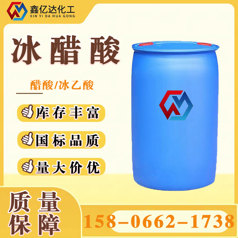 冰乙酸(化学式C₂H₄O₂),又称冰醋酸、无水乙酸,醋酸是一种无色透明液体,具有刺激性气味。其熔点为16.635℃,沸点117.9℃,密度1.0492,与水、乙醇等溶剂混溶,广泛应用于化工合成及分析领域。CAS号为64-19-7,属可燃性液体,安全风险包含腐蚀性(R35)等警示。